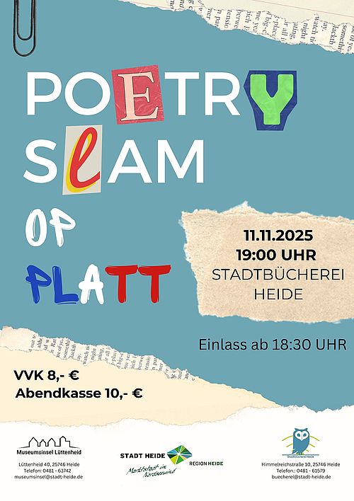 Anmelden unter 0481-6 15 79 oder in der Stadtbücherei Heide, Himmelreichstr. 10-12